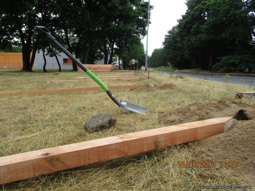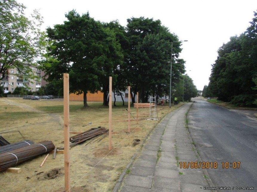 W pierwszej kolejnosci wykonawca zaczał ogradzać teren budowy.